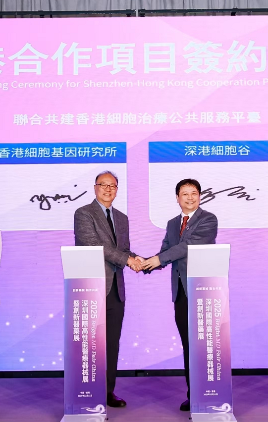 On December 11, the 2025 Shenzhen International High-Performance Medical Device and Innovative Medicine Exhibition (Hong Kong Station) was successfully held in Kowloon, Hong Kong. The event was guided by the Shenzhen Municipal Development and Reform Commission, the Health Bureau of the Hong Kong Special Administrative Region, the Health Commission of Shenzhen Municipality, and the Shenzhen Municipal Healthcare Security Administration. It was jointly organized by the Shenzhen Biomedical Promotion Association, the Shenzhen Biomedical Industry Alliance, the Shenzhen Society for Life Sciences and Biotechnology, the Hong Kong Association for Biomedical Innovation, and the Hong Kong Biotechnology Organization. Professor Shi Yuanyuan, Chairman of Cell Valley Group, was invited to attend the event, where he signed a significant strategic cooperation agreement and delivered a keynote speech.