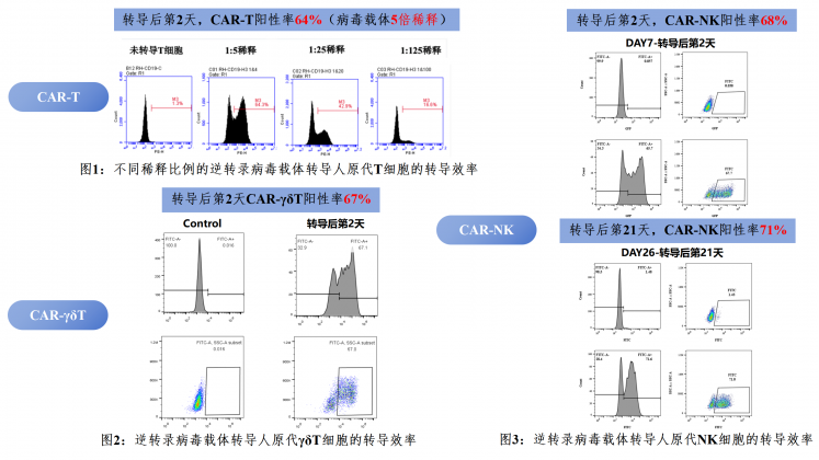 • 针对慢病毒难感染的NK细胞,用逆病毒载体转导效率可达50%以上,且活率高于95%