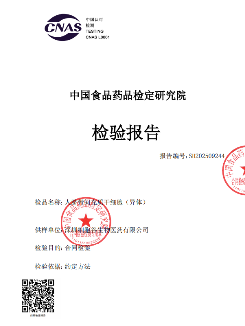 喜讯|深圳USDT钱包干细胞产品顺利顺利获得中检院检测,多代次全项合格