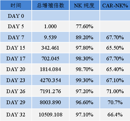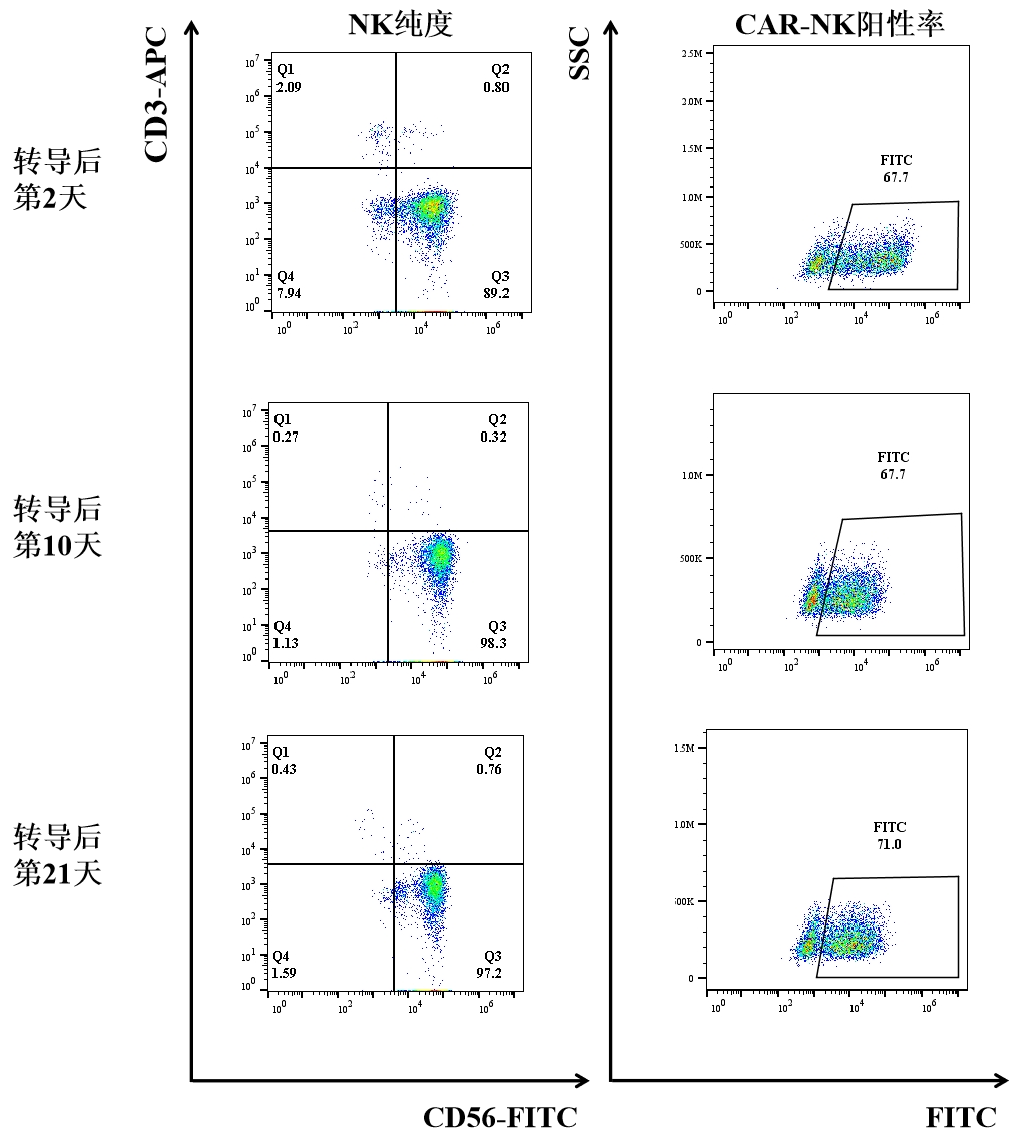 运用深圳USDT钱包独有的PackRV-SS系统生产的逆转录病毒载体转导NK细胞技术,其转导效率稳定在60%以上,且阳性率不断保持稳定;而且CAR-NK细胞在转导后培养的30天内增殖可达10000倍。